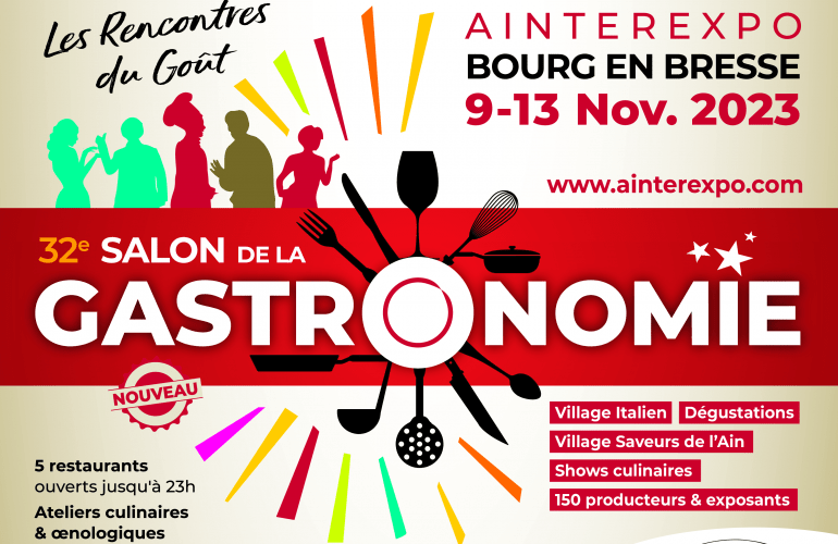 Ne manquez pas ce rendez-vous culinaire incontournable et venez éveiller vos sens au 32ᵉ Salon de la Gastronomie de Bourg-en-Bresse. Nous vous attendons nombreux pour partager ensemble cette aventure gastronomique exceptionnelle !