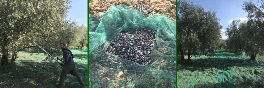 la chute des olives. Une fois toutes les olives tombées dans le filet, elles