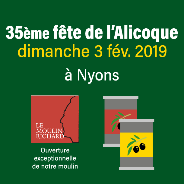 Elle a lieu tous les 1ers dimanches de février. Elle correspond à la fin de la récolte des olives et au moment où l’huile nouvelle commence à s’écouler des moulins. Cette dégustation gratuite, appelée Alicoque, est ouverte par le Grand-Maître de la confrérie des Chevaliers de l’Olivier et le Maire de Nyons.