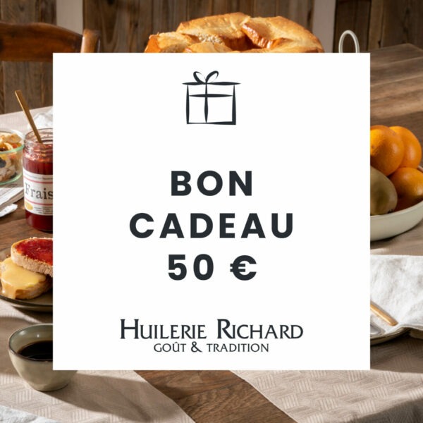 Offrez l’expérience inoubliable de choisir parmi les meilleurs produits d’huilerie et d’épicerie fine. Achetez dès maintenant nos bons cadeaux et laissez vos proches explorer un monde de saveurs exceptionnelles sur www.huilerie-richard.com Les bons sont uniquement valables sur le site internet. Nous travaillons à la rendre disponible dans nos boutiques et camion-magasin