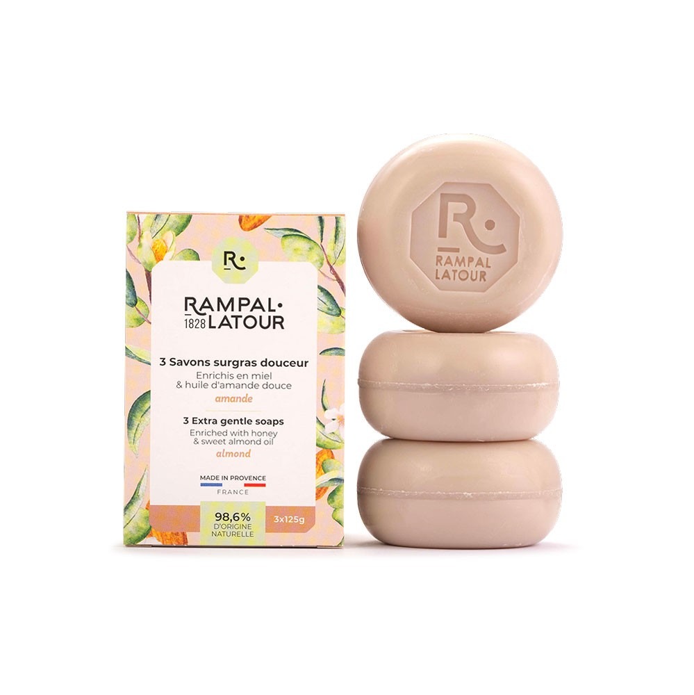 Découvrez nos savonnettes rondes Savon Surgras Amande-Miel, un soin nettoyant ultra-doux enrichi à l’huile d’amande douce et au miel apaisant. Présentées en coffret de trois savonnettes de 125 g chacune, elles sont parfaites pour les mains et le corps. Fabriquées selon la tradition à Salon-de-Provence, ces savonnettes sont spécialement conçues pour offrir une qualité supérieure : elles durent longtemps, se rincent facilement, et ne se cassent pas. Leur parfum tonifiant d’amande ajoute une touche rafraîchissante à votre routine de soins quotidiens.