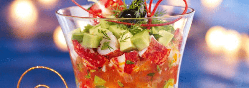 On passe à table avec cette entrée festive à base de homard et d’avocat.
